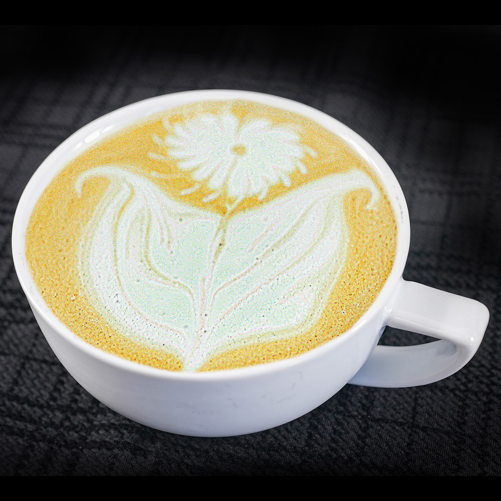 Creamy, aromatic, spiced tea drink made from organic black tea infused with cinnamon, cardamon and cloves mixed with steamed milk.